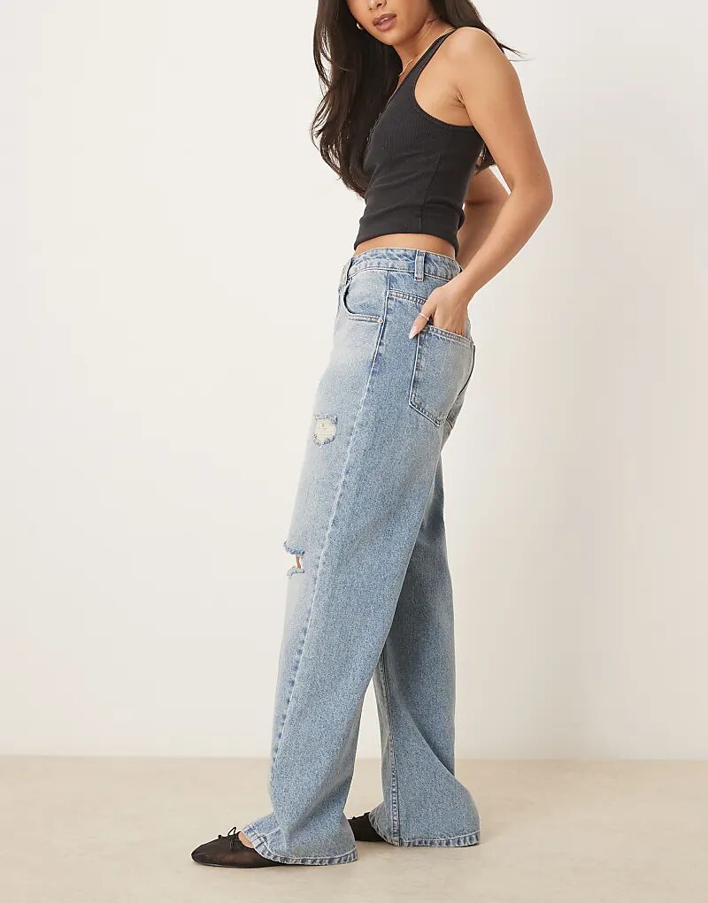 Мешковатые джинсы с разрывами в средне-синем цвете ASOS DESIGN