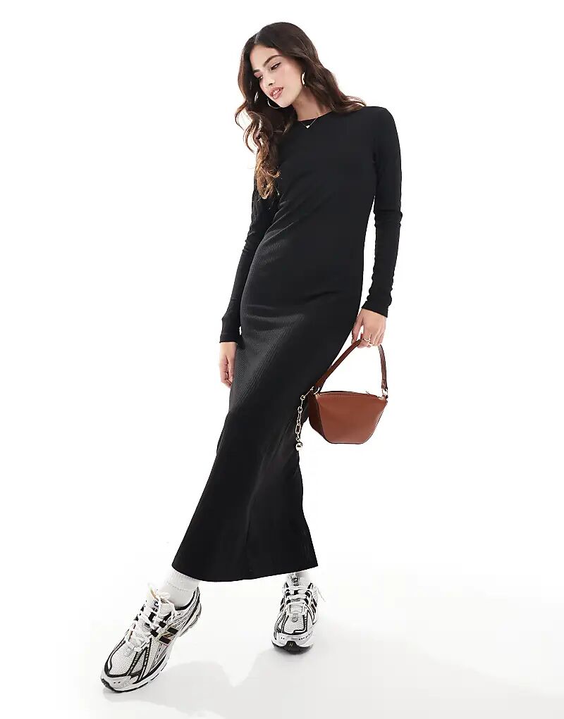 Макси-платье в рубчик черного цвета ONLY 6 193₽