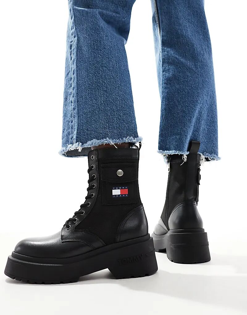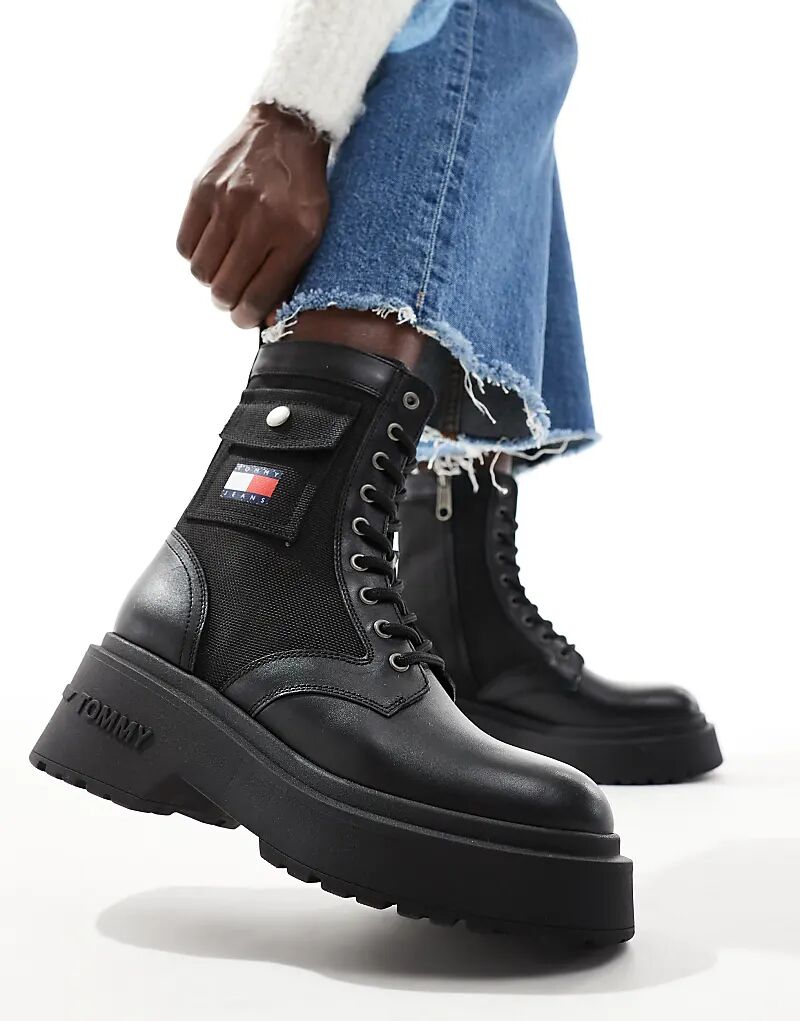 Массивные боевые ботинки на шнурках черного цвета Tommy Jeans