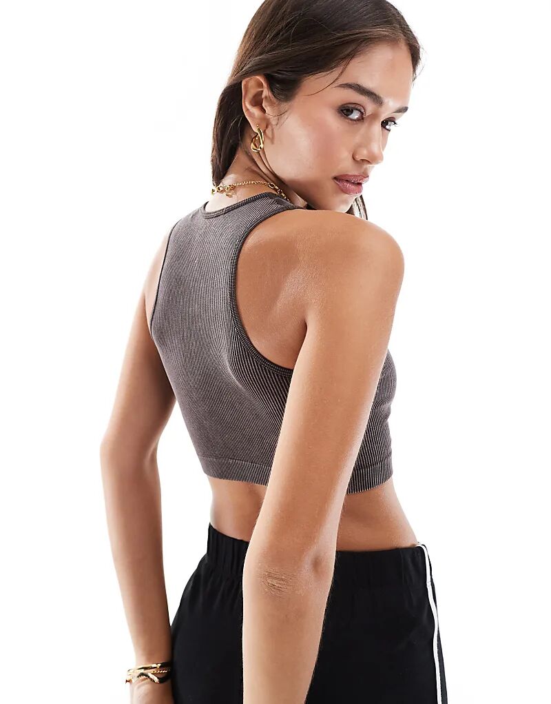 Бесшовный ребристый укороченный топ черного цвета ONLY