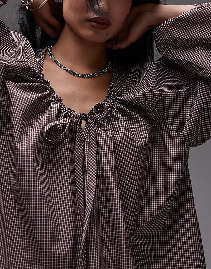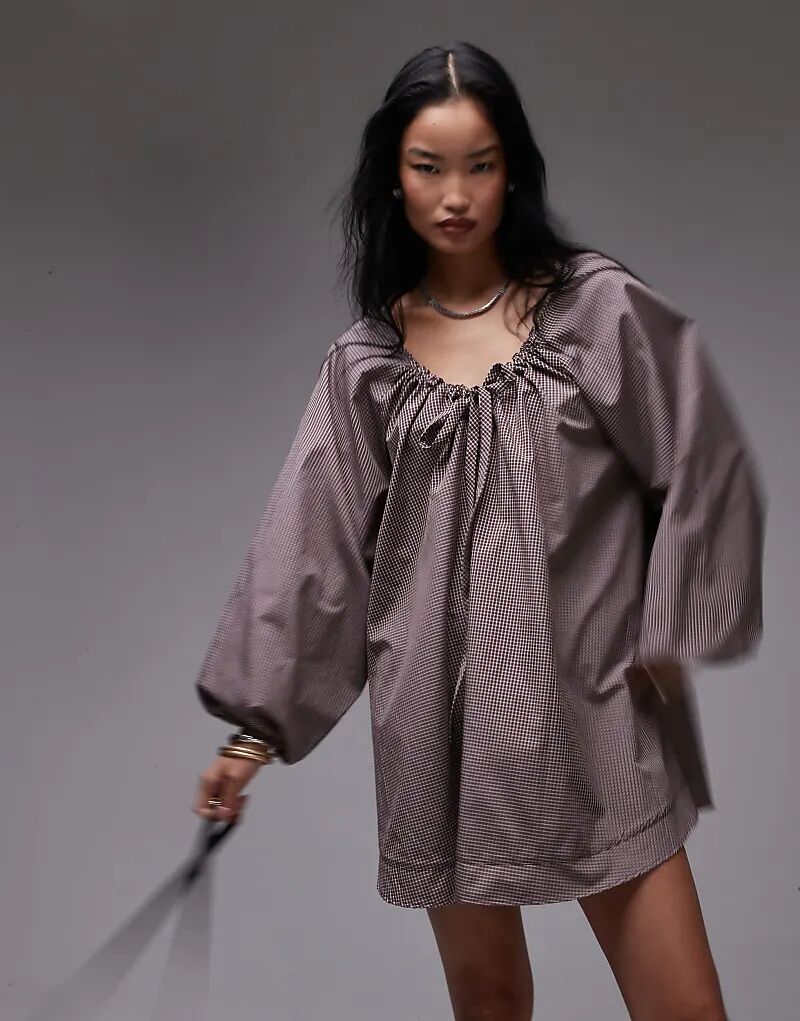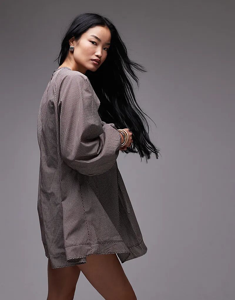 Платье-трапеция в коричневую клетку Topshop