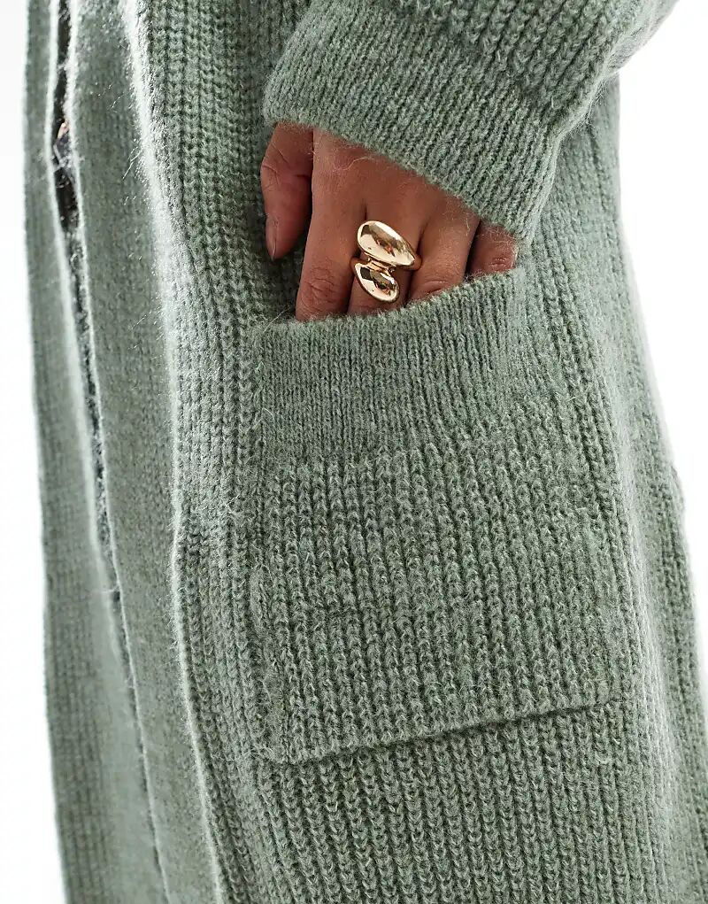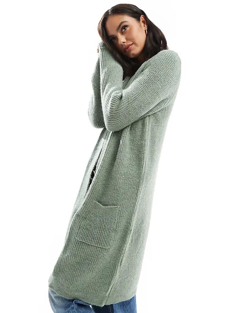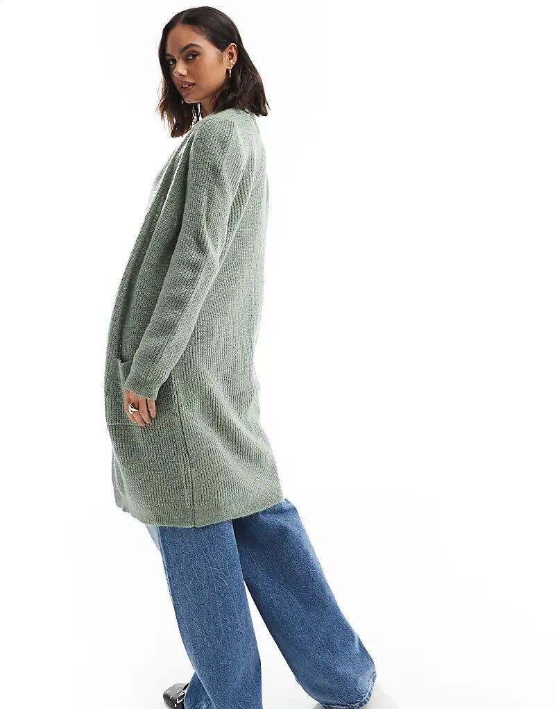 Удлиненный открытый кардиган зеленого цвета ONLY