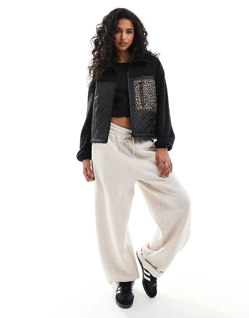 Куртка из флиса Тедди с карманом с леопардовым принтом черного цвета ONLY