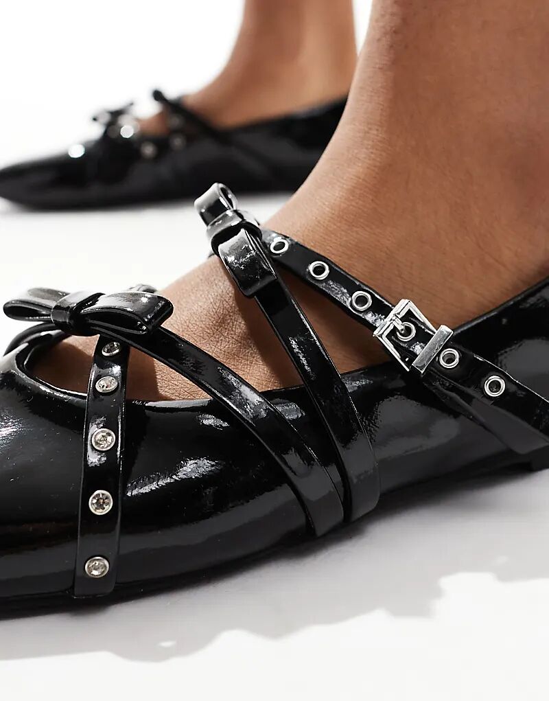 Балетки с ремешками и заклепками черного цвета Stradivarius