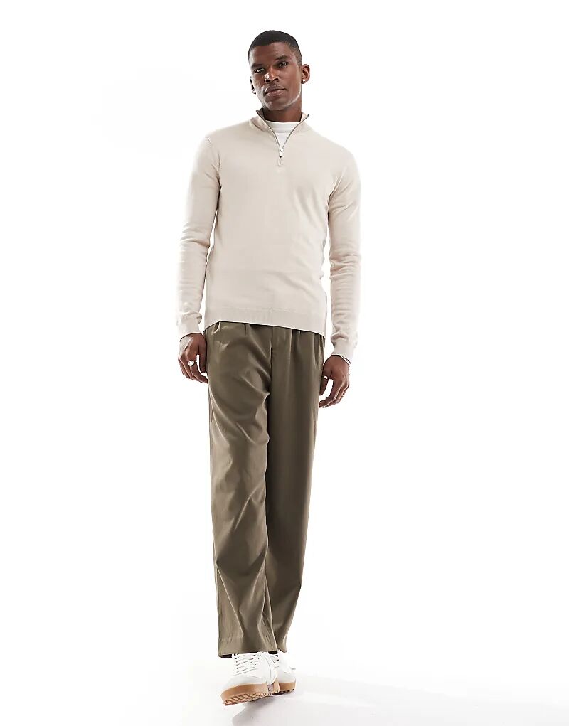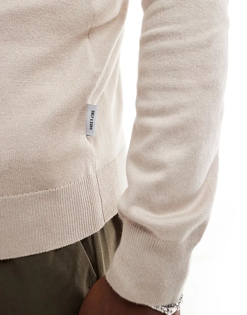 Вязаный джемпер с застежкой-молнией 1/4 в цвете «stone» ONLY & SONS