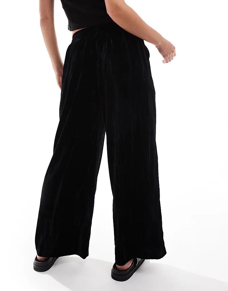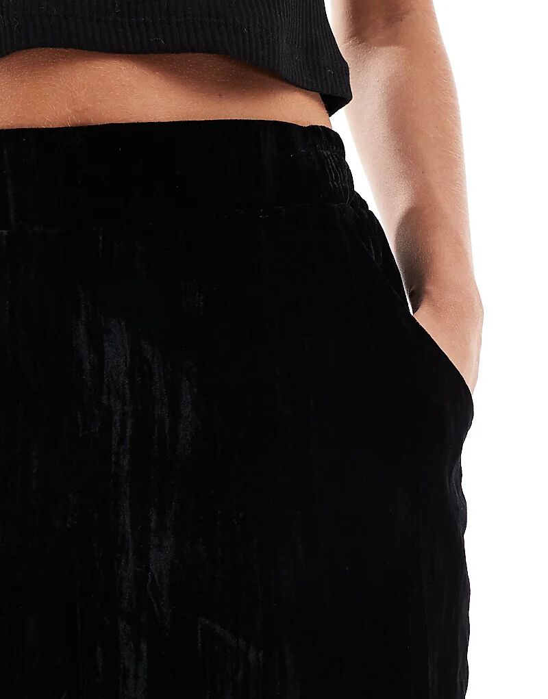 Брюки из жатого бархата черного цвета ASOS