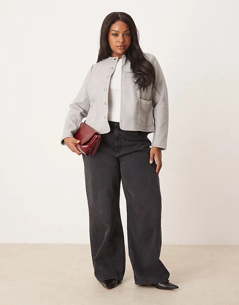 Пуховик без воротника New Look Curve серого цвета