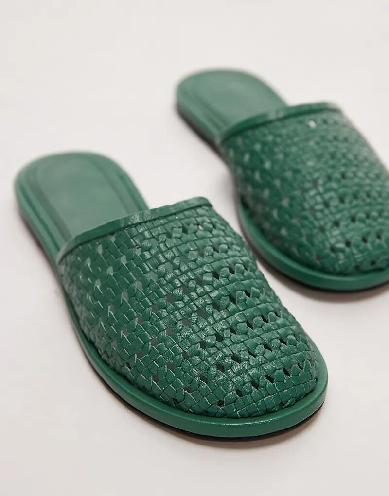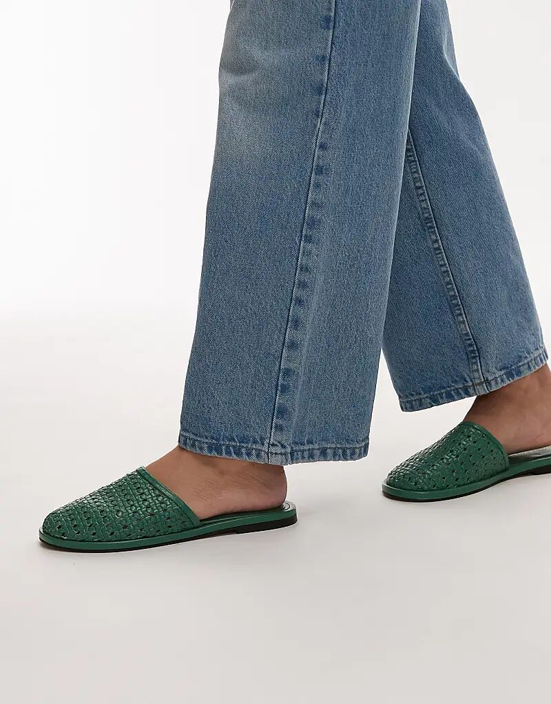 Сабо из плетеной кожи Bobby зеленого цвета Topshop
