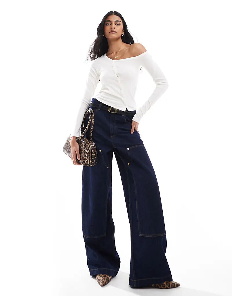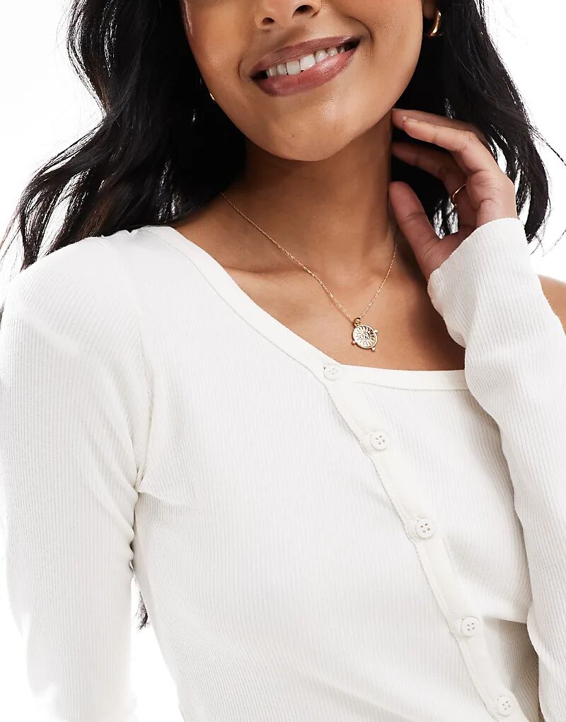 Асимметричный топ STR в рубчик с пуговицами цвета экрю Stradivarius