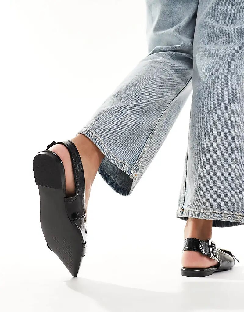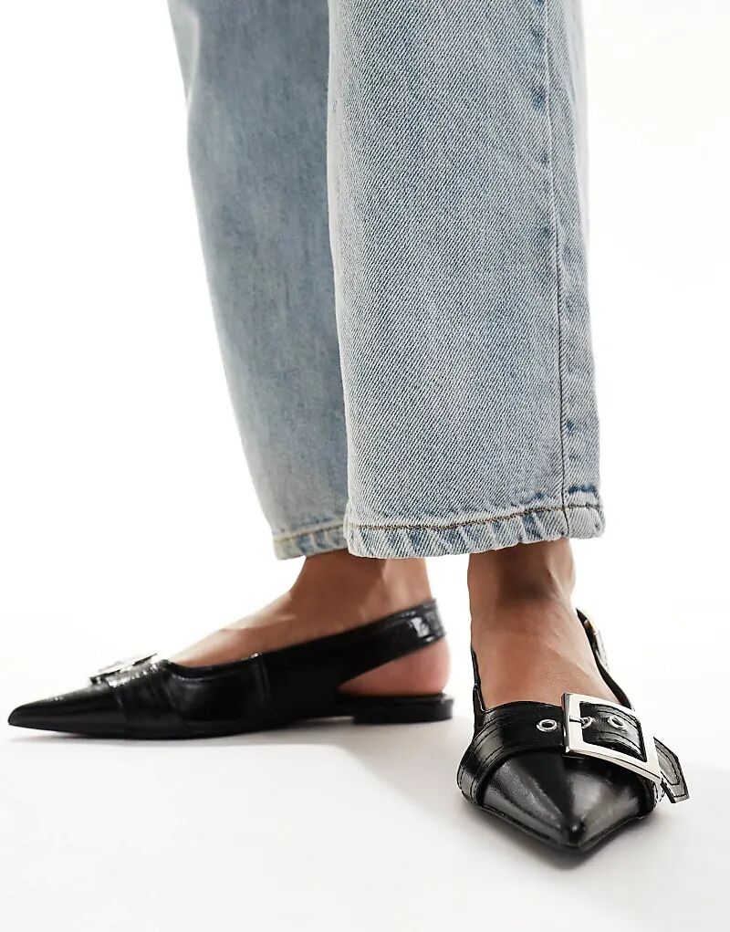 Балетки Wide Fit Legion с пряжкой черного цвета ASOS DESIGN