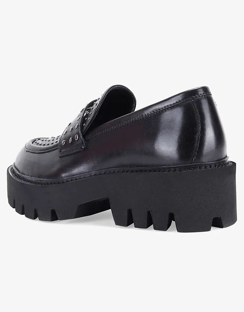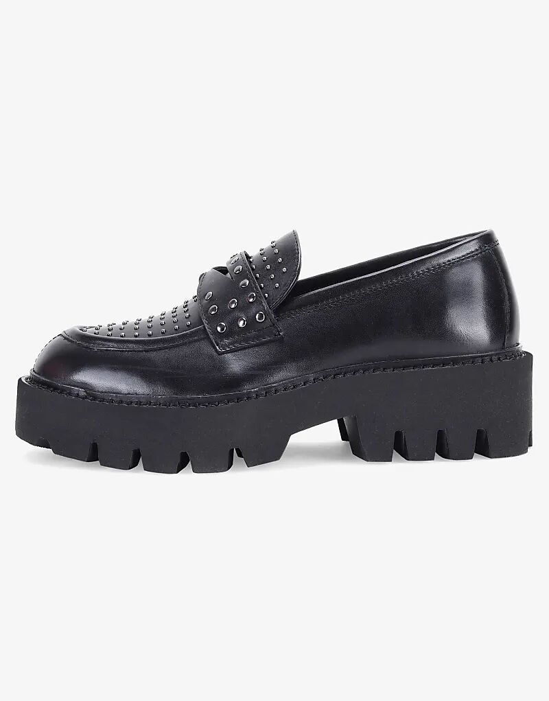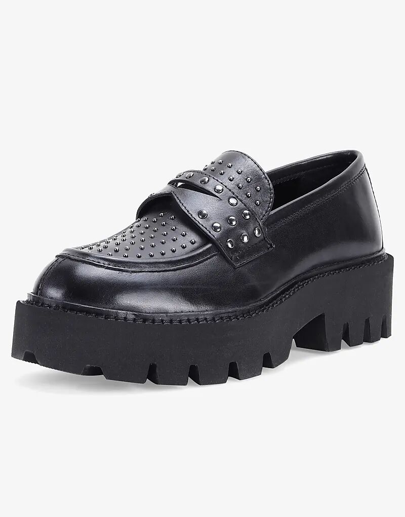 Стильные черные кожаные туфли-лоферы OFF THE HOOK 'COMPTON' на блочном каблуке черного цвета
