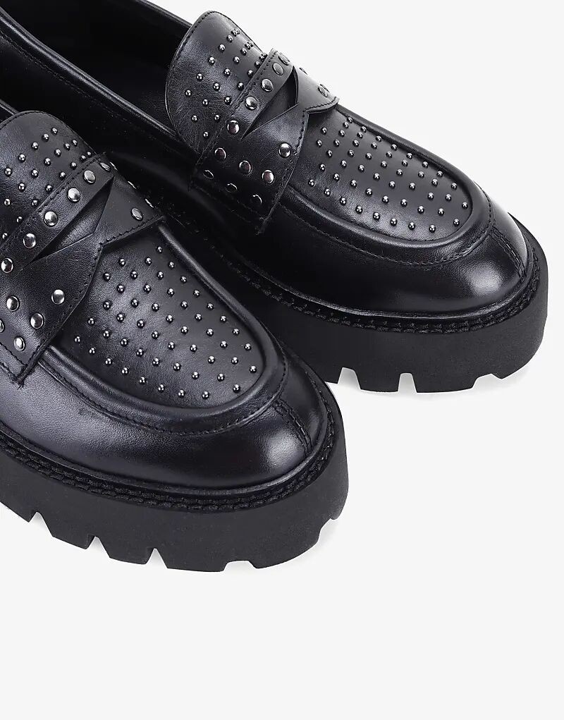 Стильные черные кожаные туфли-лоферы OFF THE HOOK 'COMPTON' на блочном каблуке черного цвета 8 383₽