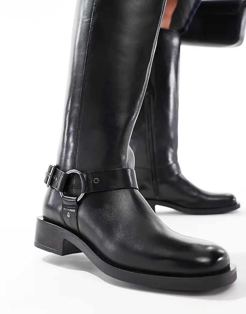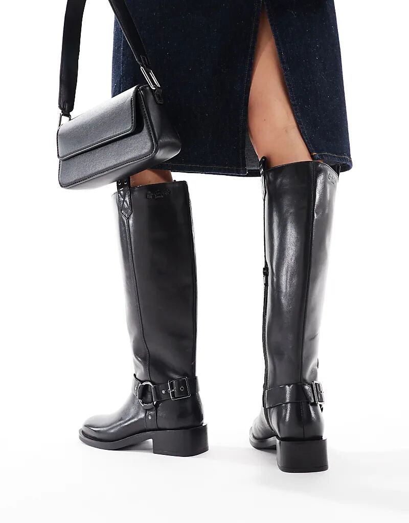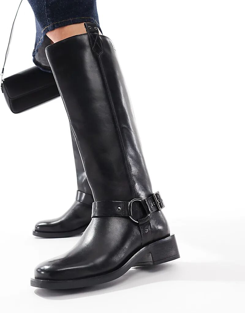 Сапоги из кожи OFF THE HOOK 'ADDERSTONE' на блочном каблуке до колена черного цвета