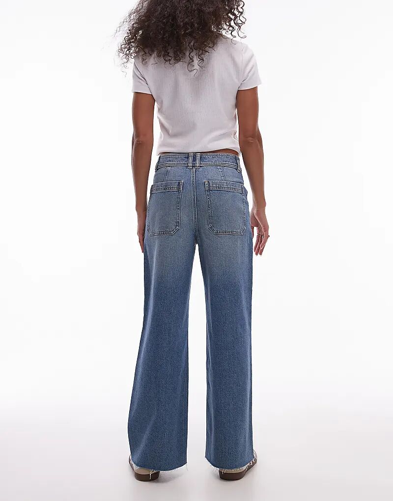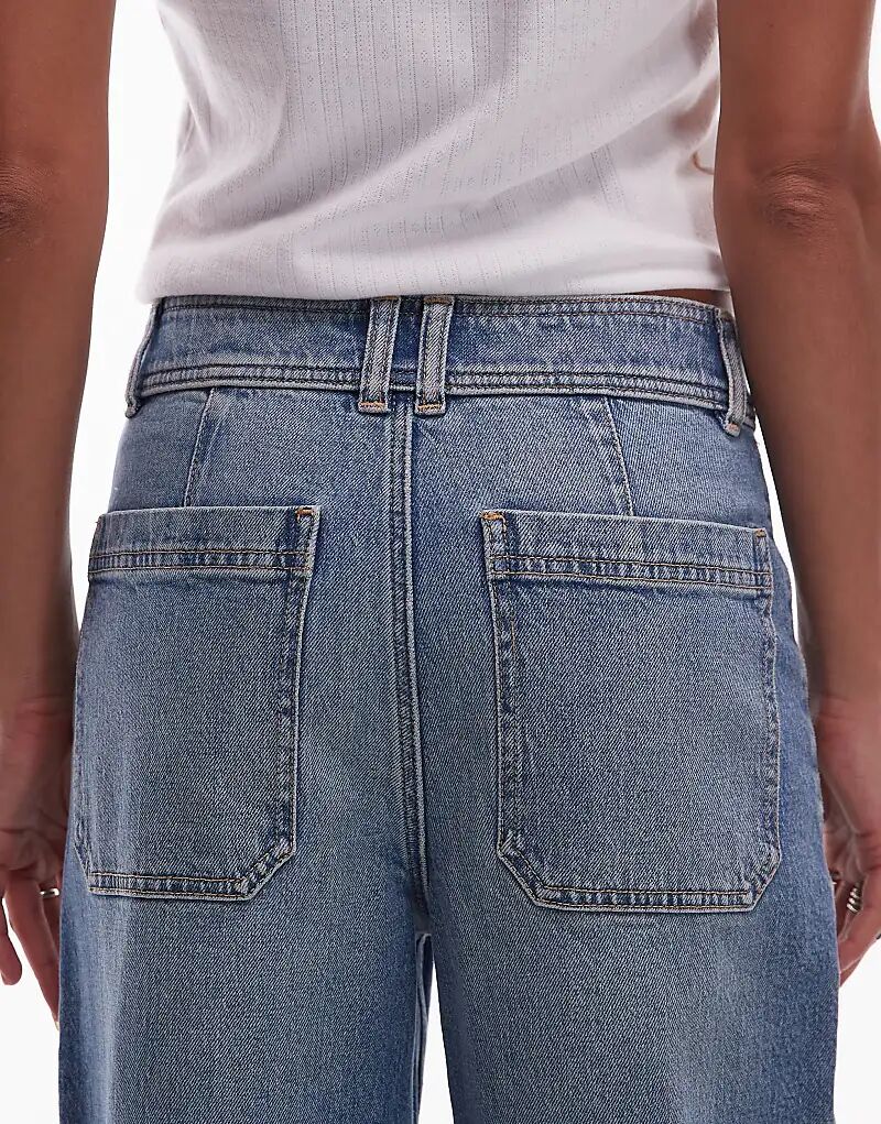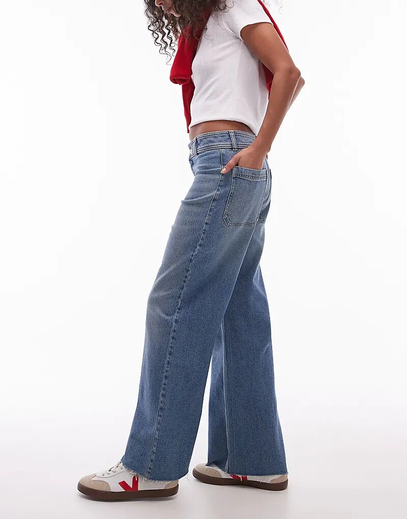 Джинсы широкого кроя средне-синего цвета Mango