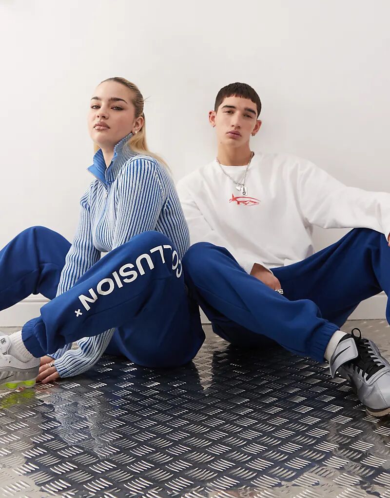COLLUSION Унисекс-джоггеры с логотипом в темно-синем цвете