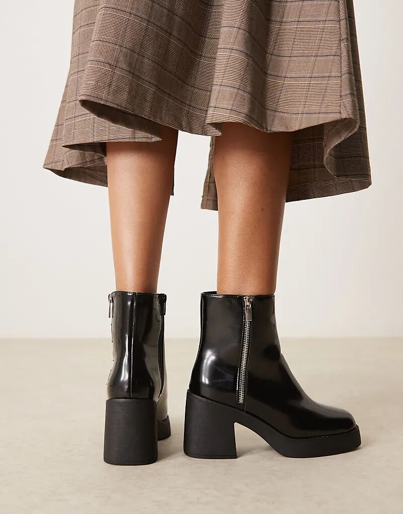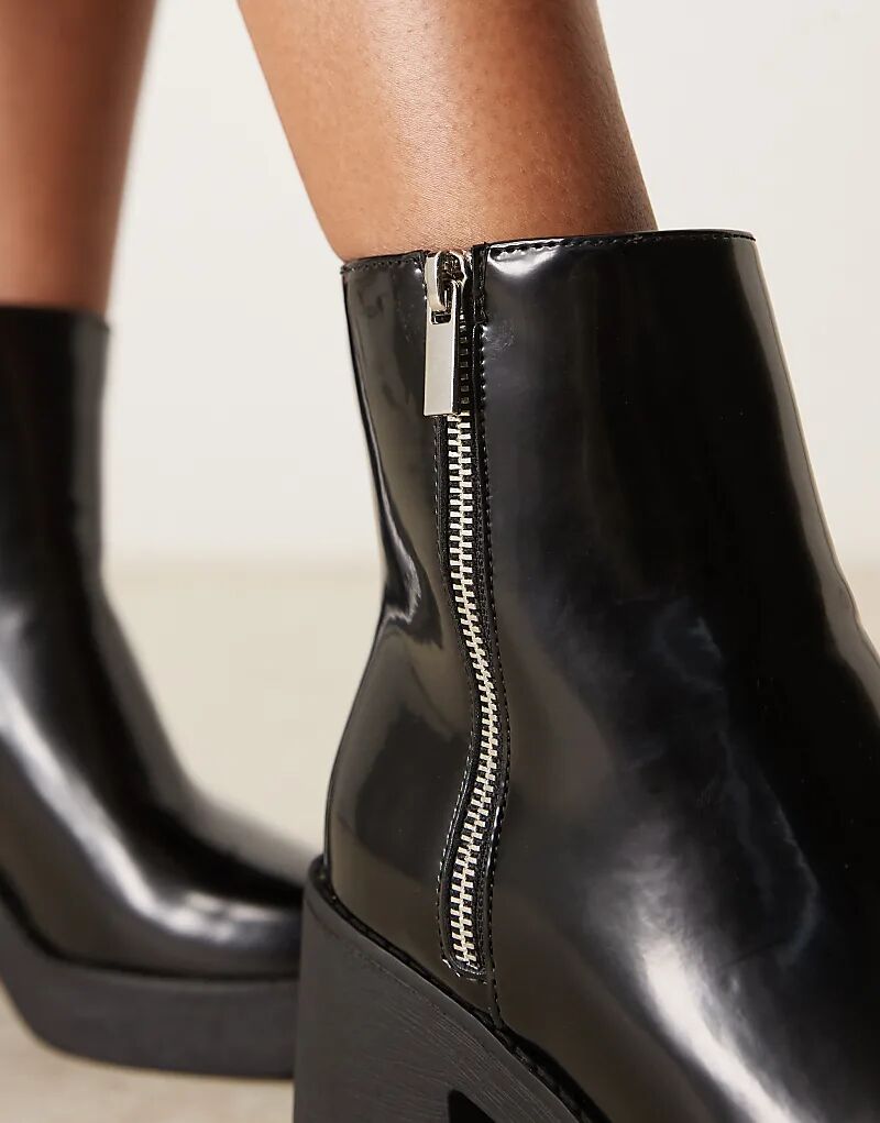 Ботильоны на массивном среднем каблуке черного цвета New Look