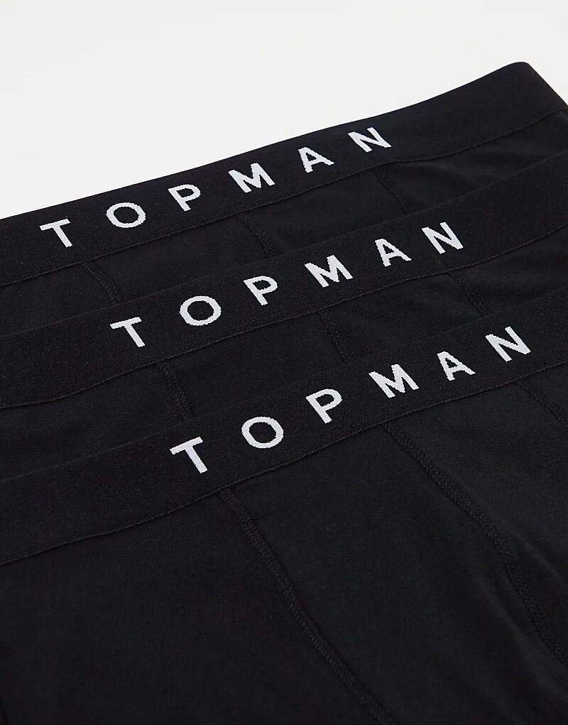 3 пары трусов-боксеров черного цвета с черными поясами Topman