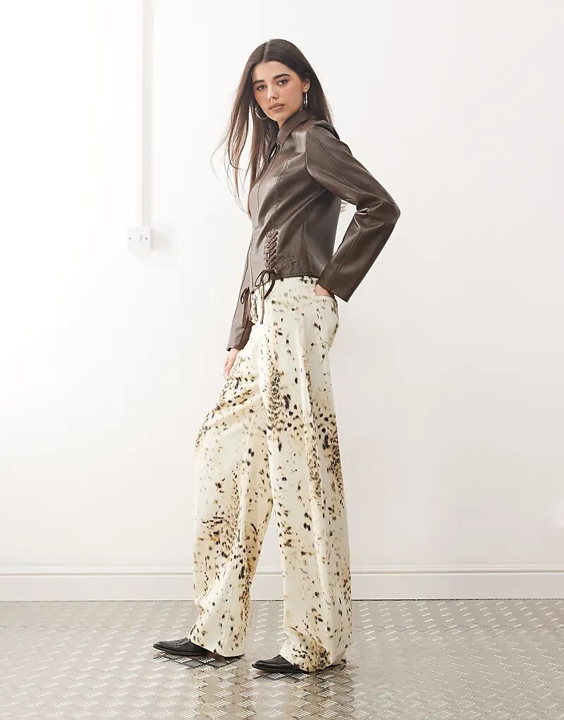 Джинсы-бочонки цвета экрю с принтом снежного леопарда Lioness 10 699₽