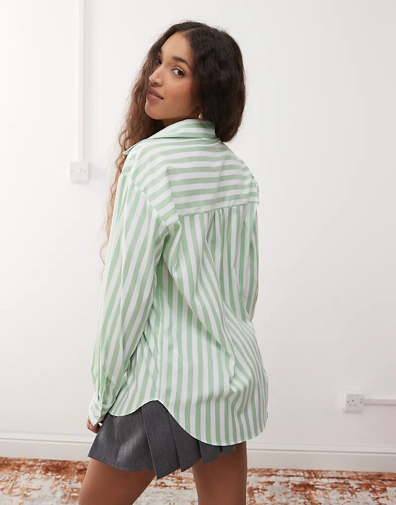 Рубашка оверсайз в зеленую полоску Miss Selfridge