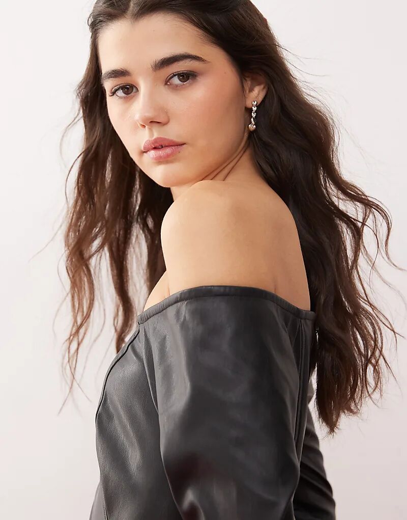 Мини-платье-бардо из искусственной кожи с клешем Miss Selfridge 2 503₽