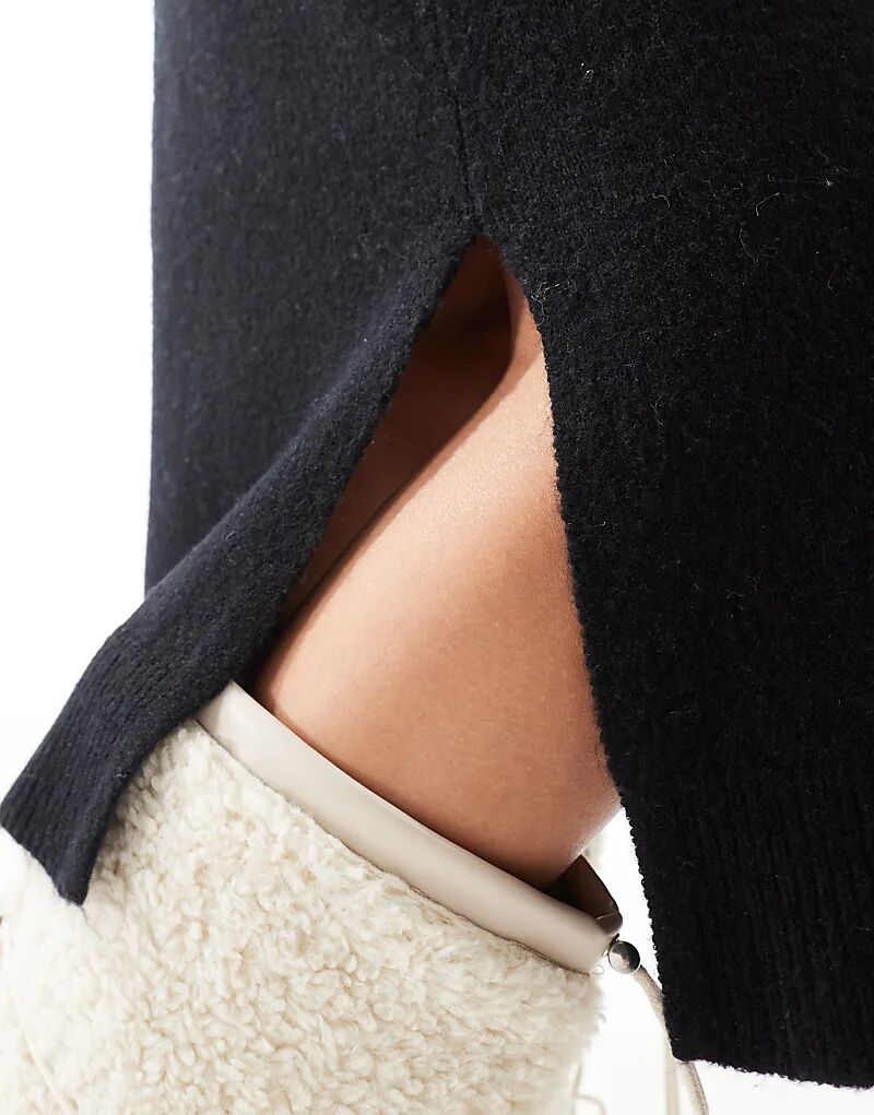 Длинное платье-джемпер с воротником-стойкой черного цвета Pieces