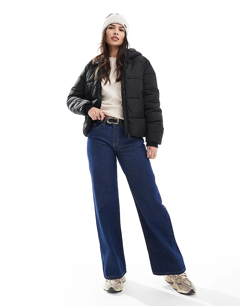 Утепленное пальто с капюшоном черного цвета Pieces