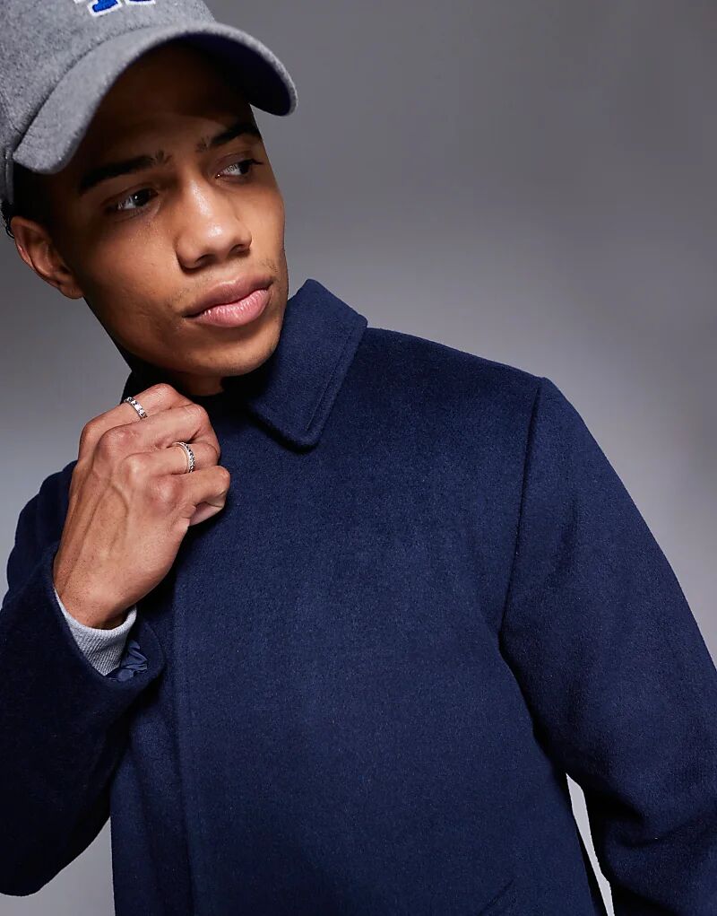 Шерстяное пальто темно-синего цвета ASOS DESIGN