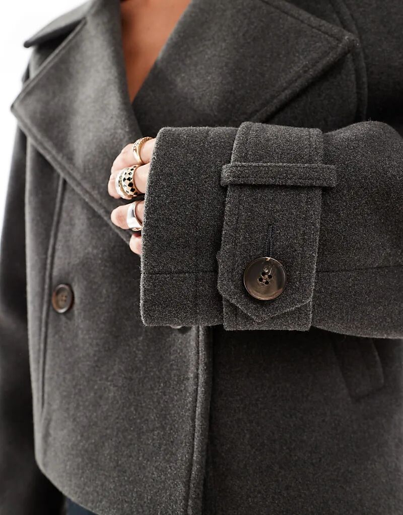 Укороченный деловой тренчкот ASOS DESIGN темно-серого цвета.