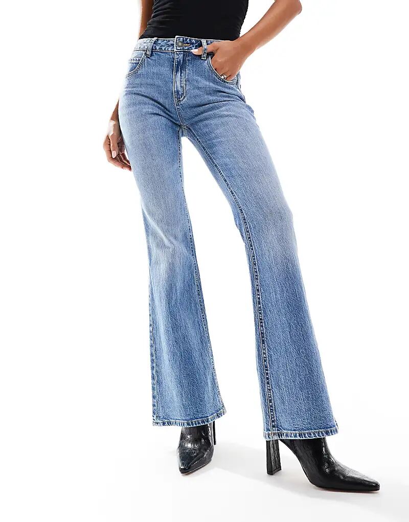 Расклешенные джинсы STR средне-синего цвета Stradivarius