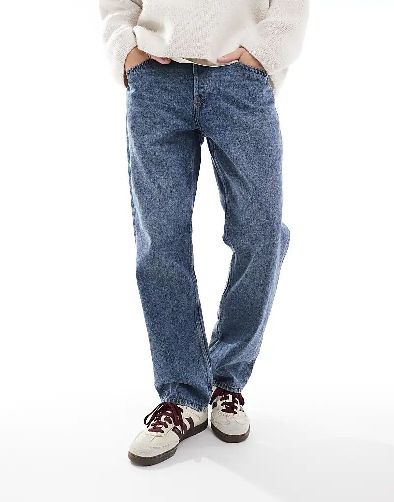 Джинсы прямого кроя в средне-синем цвете ONLY & SONS