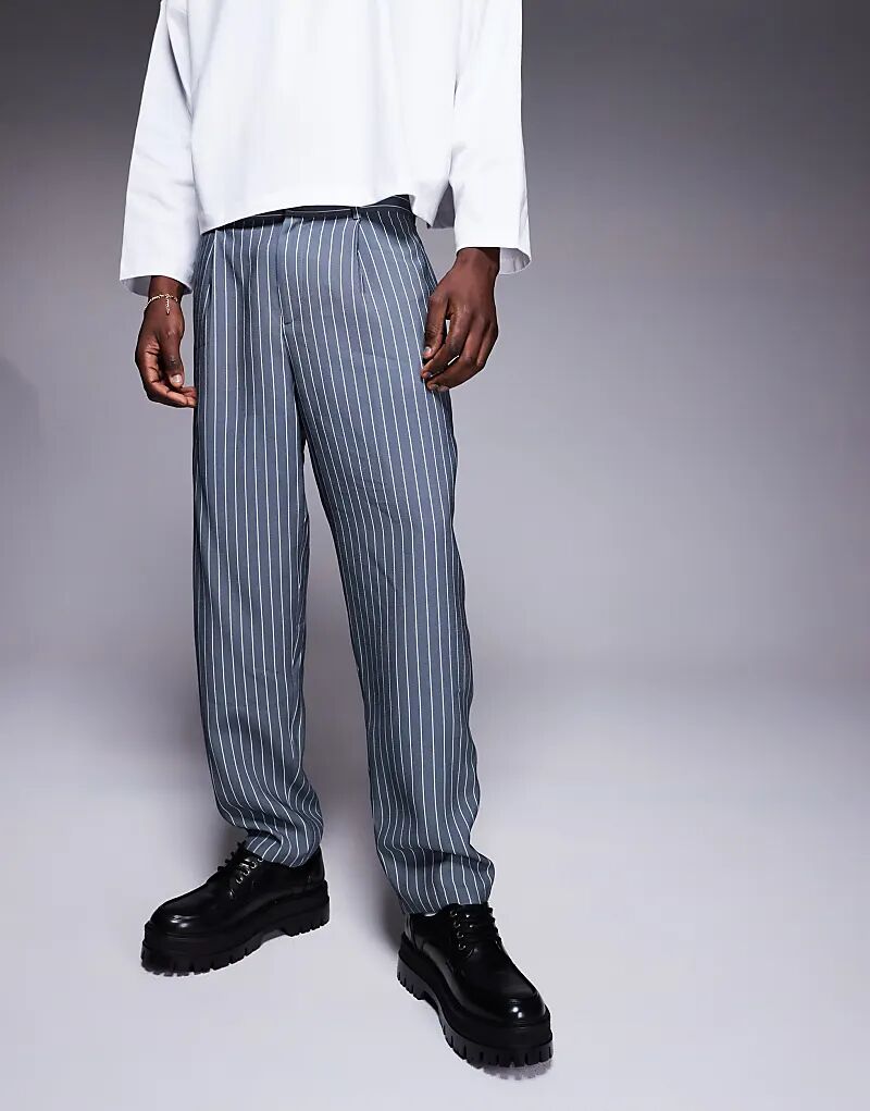 Брюки-карго в тонкую серую полоску ASOS DESIGN