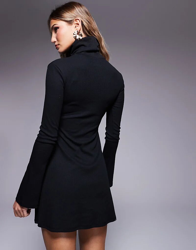 Мини-платье с воротником-стойкой в рубчик черного цвета ASOS DESIGN