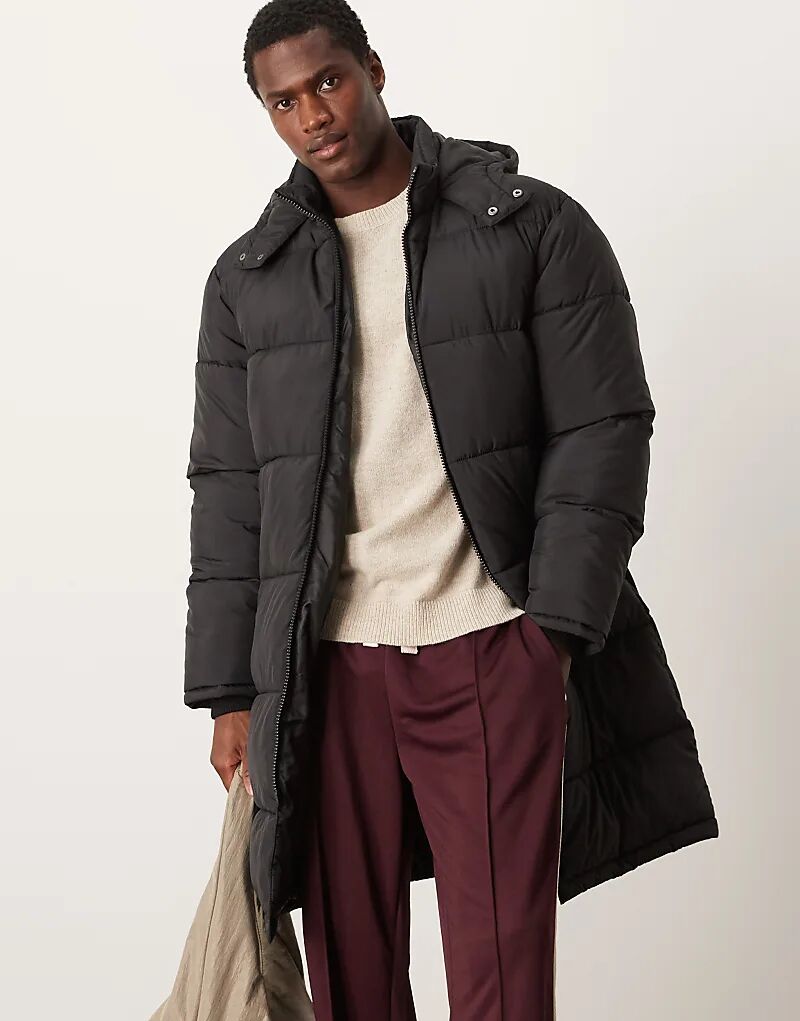 Удлиненная куртка-пуховик черного цвета New Look