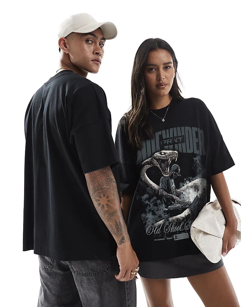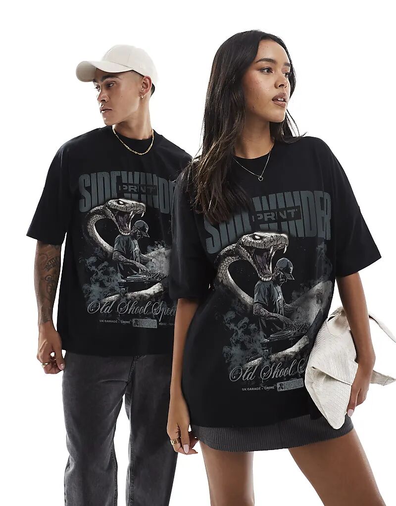Футболка оверсайз с принтом спереди Sidewinder x prnt черного цвета
