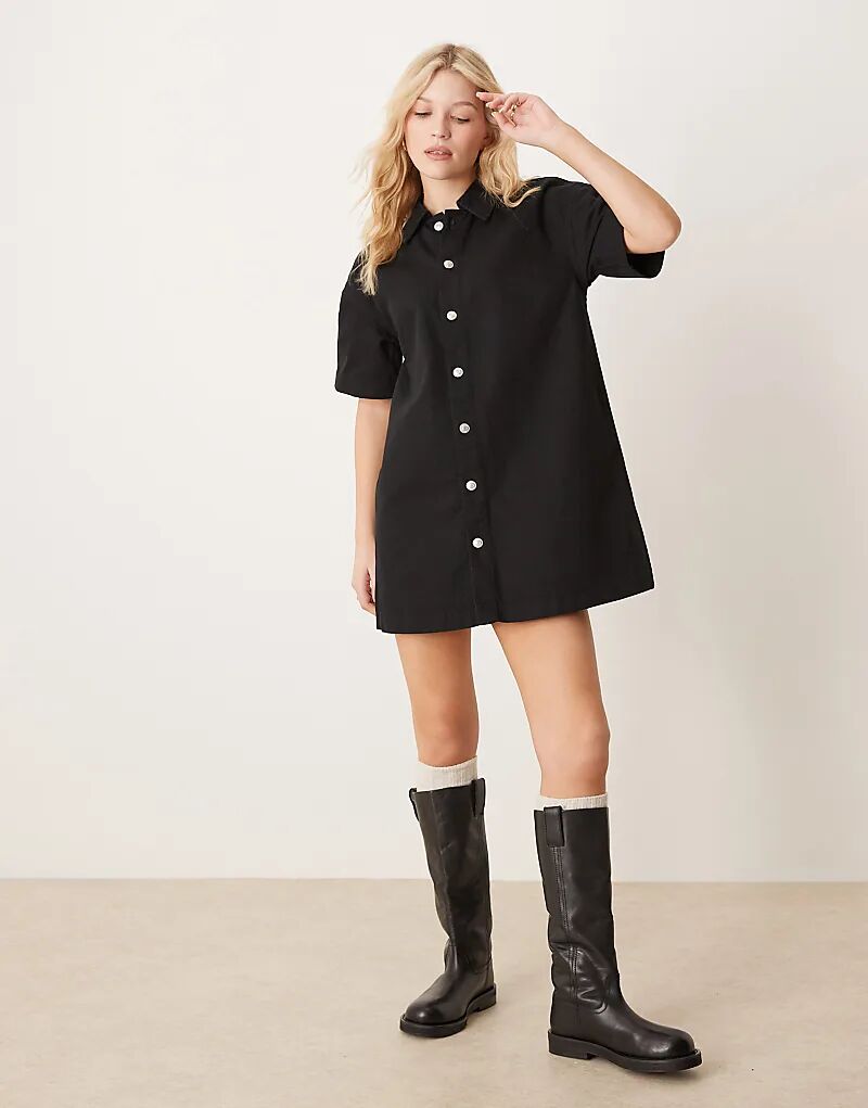Джинсовая рубашка платье черного цвета ASOS DESIGN