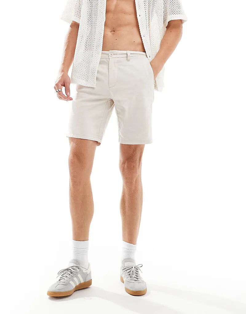 ONLY & SONS – Шорты-чиносы из льняной смеси бежевого цвета