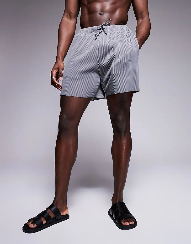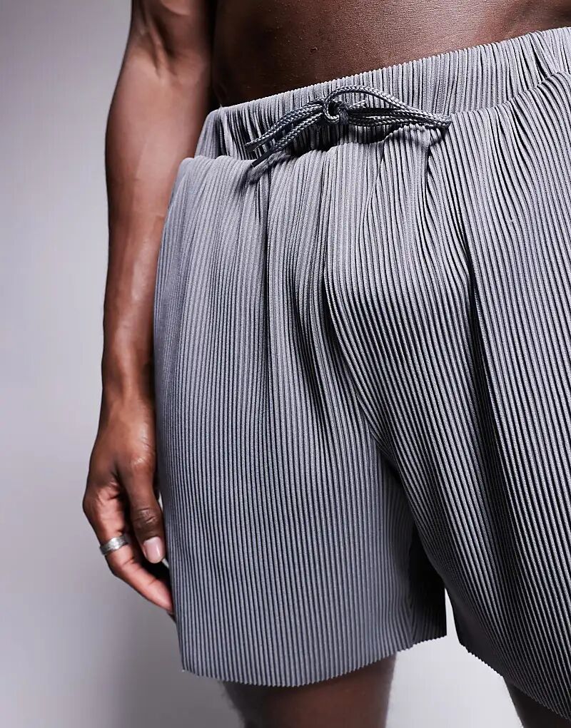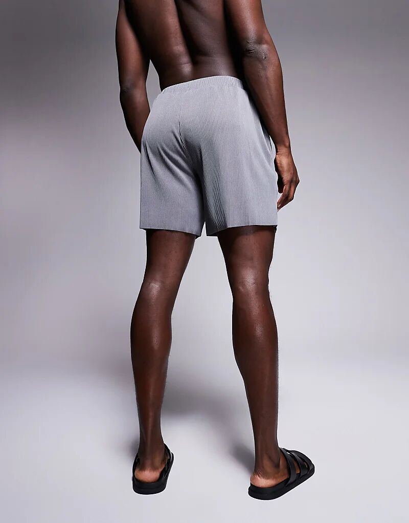 Плавки-шорты плиссе средней длины серого цвета ASOS DESIGN