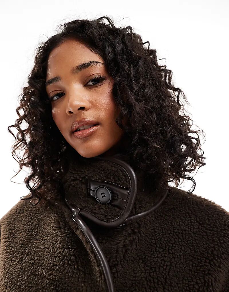 Куртка с воротником-трубой borg цвета шоколада ASOS DESIGN