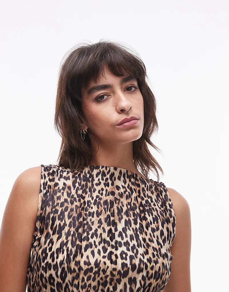 Мини-платье плиссе с леопардовым принтом в многоцветном исполнении Topshop