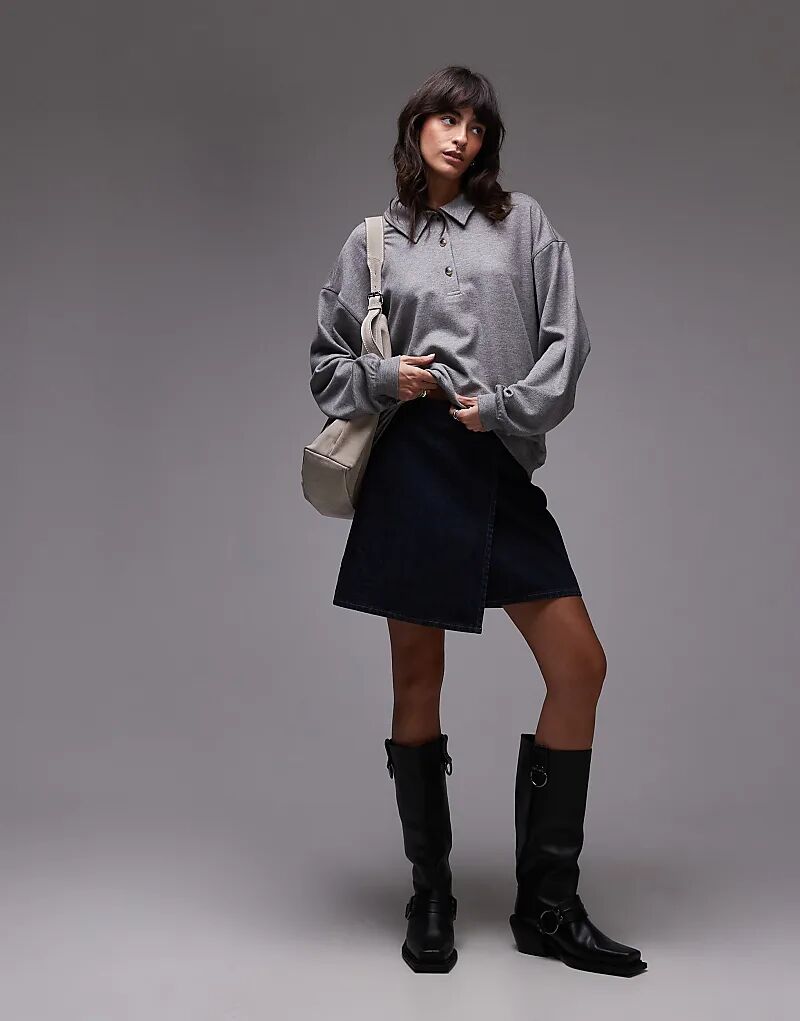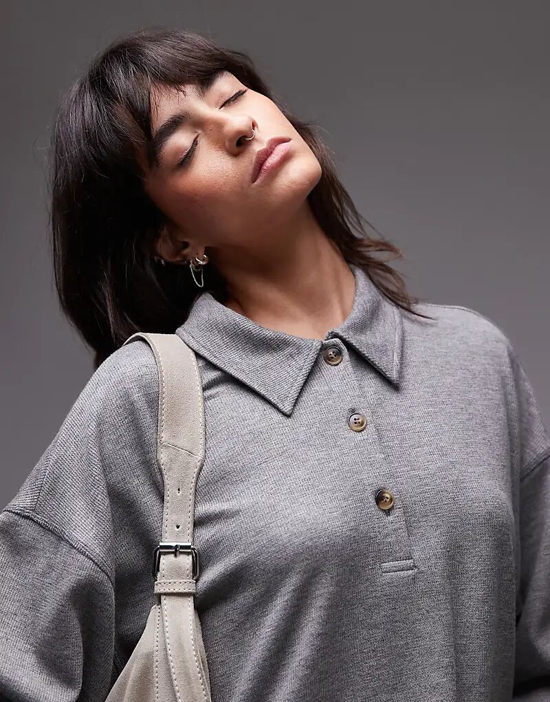 Топ-поло премиум-класса в рубчик серого цвета Topshop