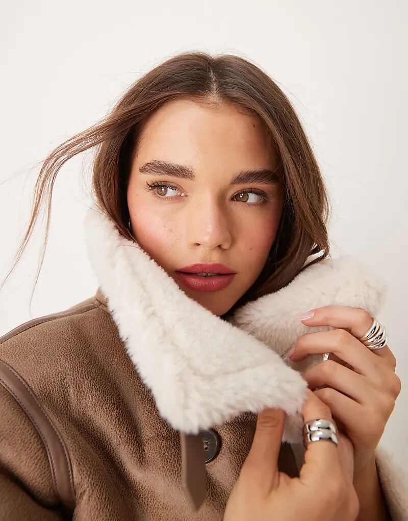 Куртка борг с воротником-воронкой из норки New Look