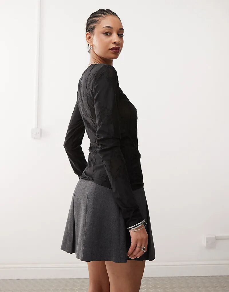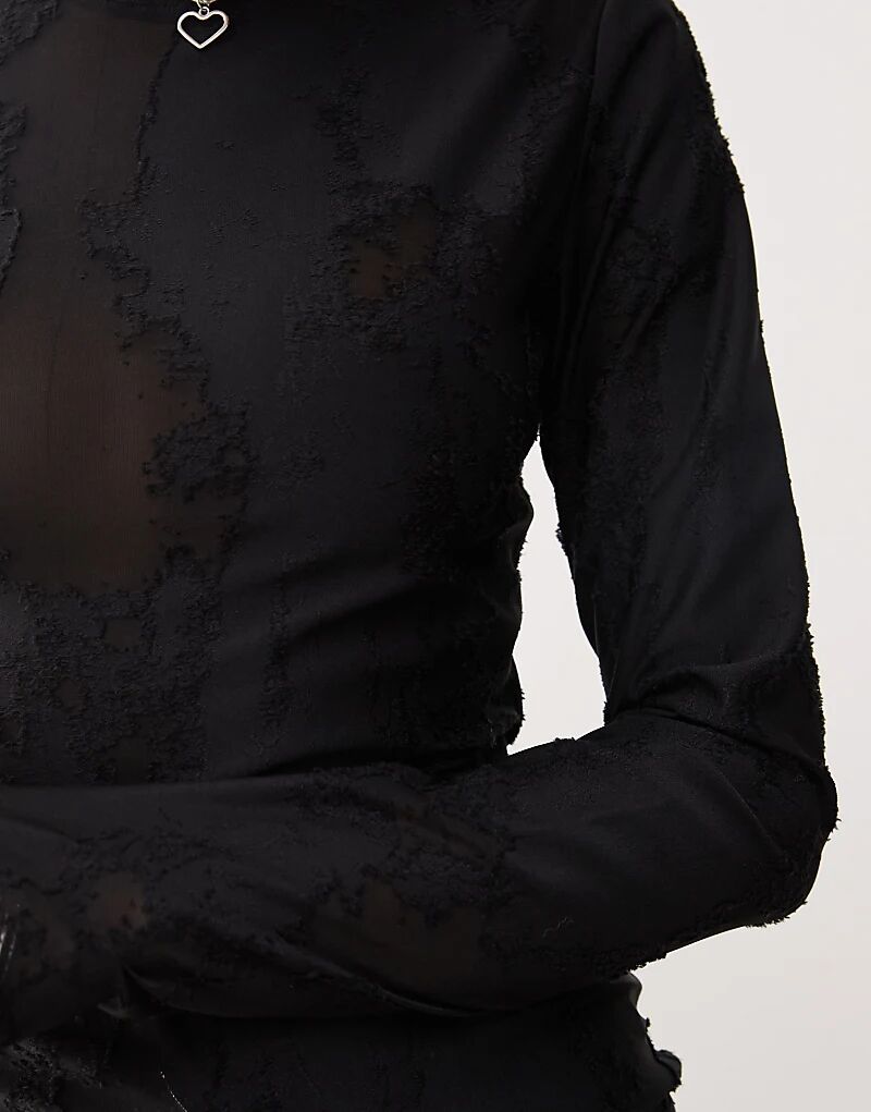 Сетчатый топ Weekday Nico с длинными рукавами черного цвета