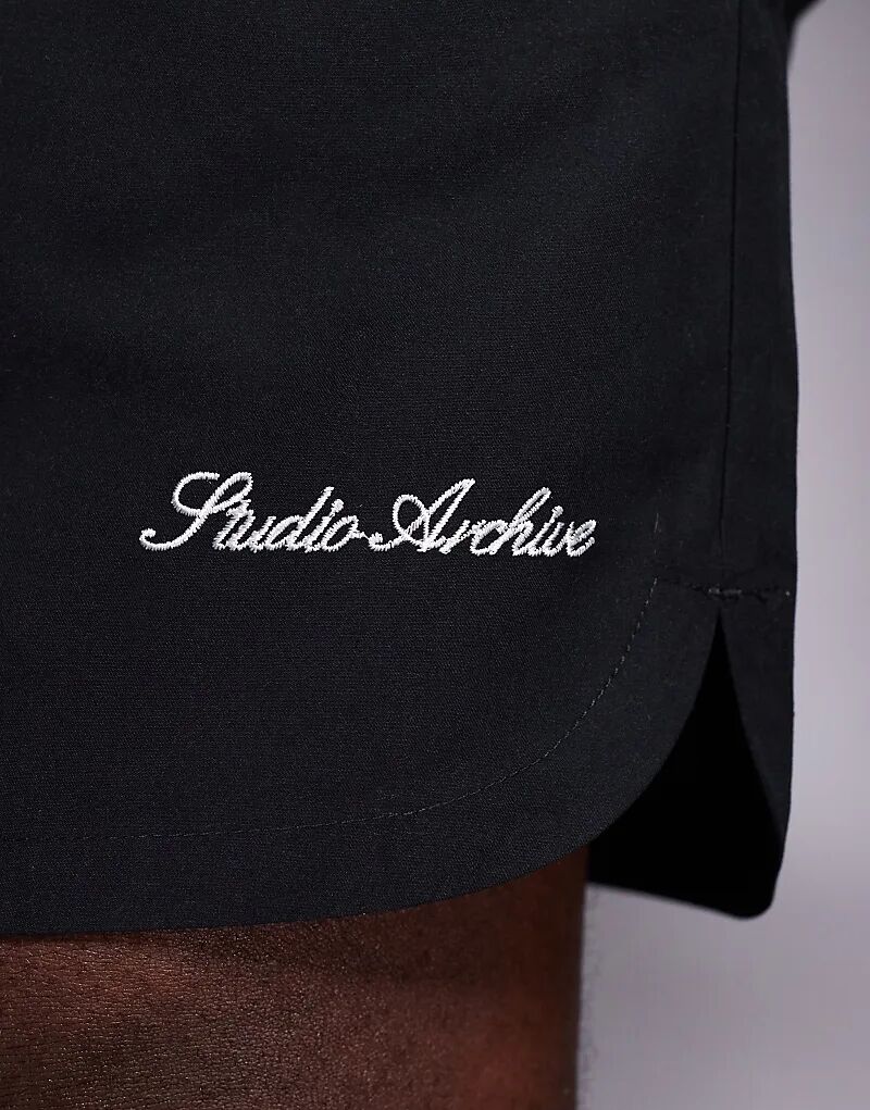 Шорты для плавания средней длины с вышивкой черного цвета ASOS DESIGN