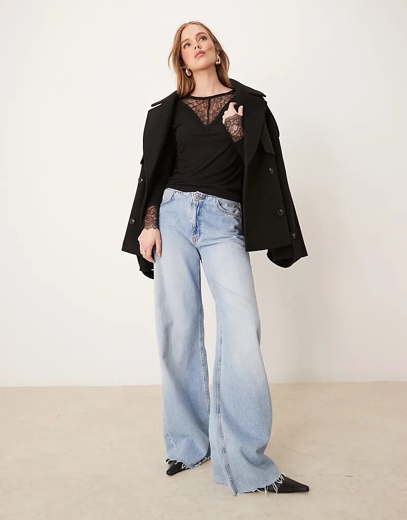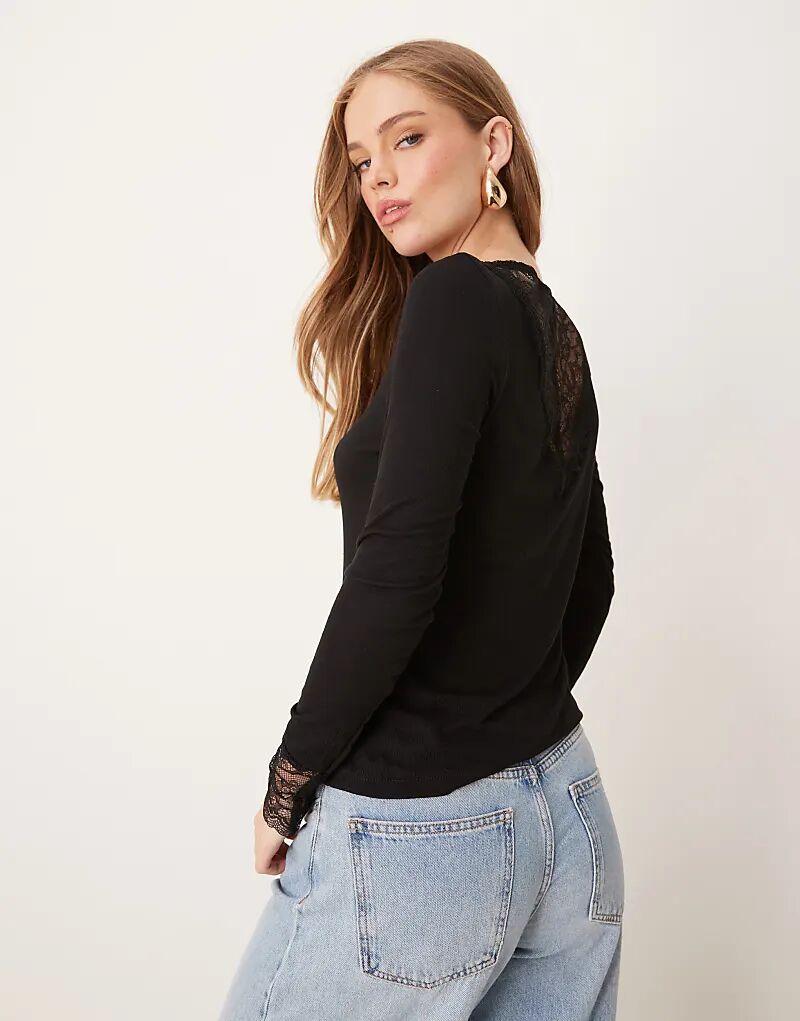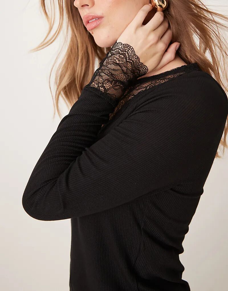 Топ в рубчик с кружевной отделкой черного цвета JDY 3 484₽