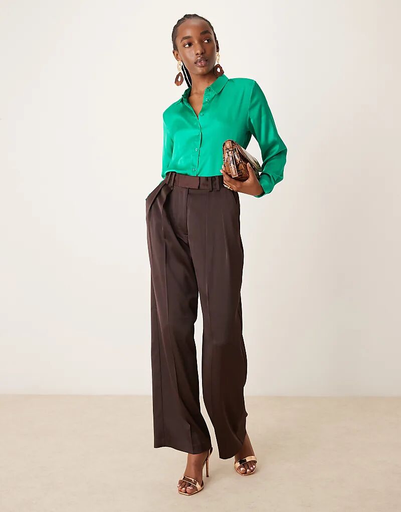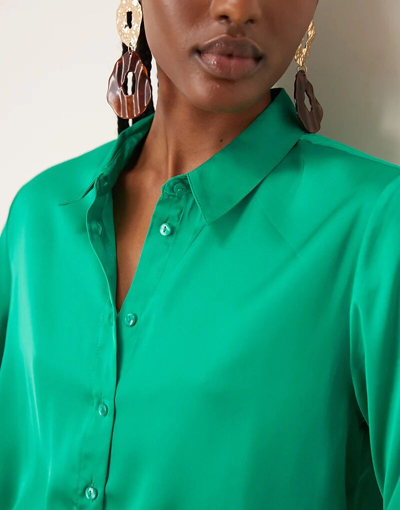 Атласная рубашка зеленого цвета JDY 3 589₽