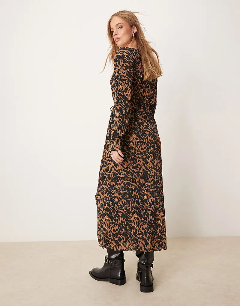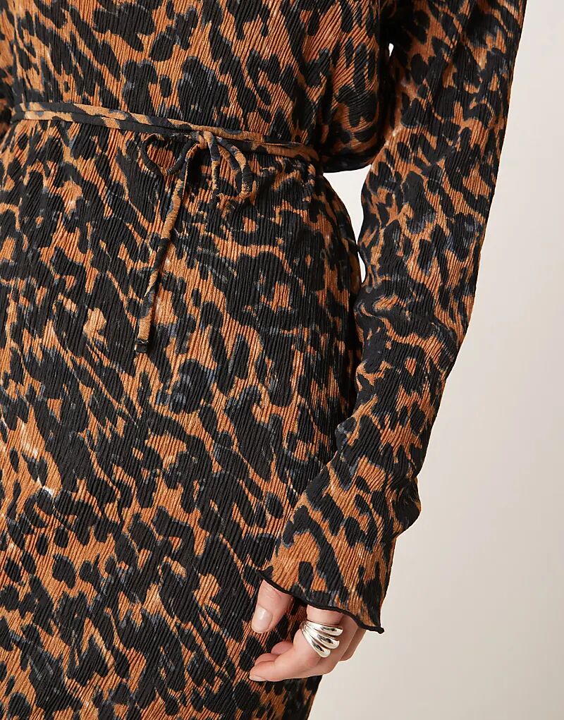 Платье миди с плиссированным поясом в леопардовый принт JDY