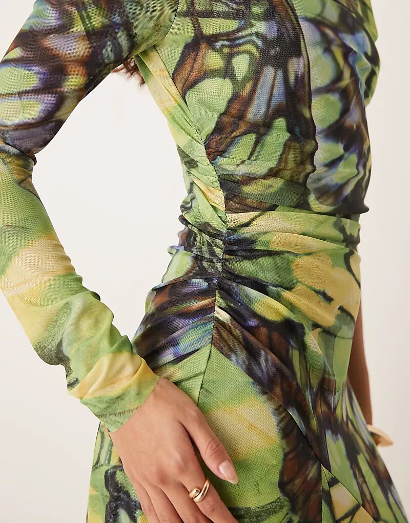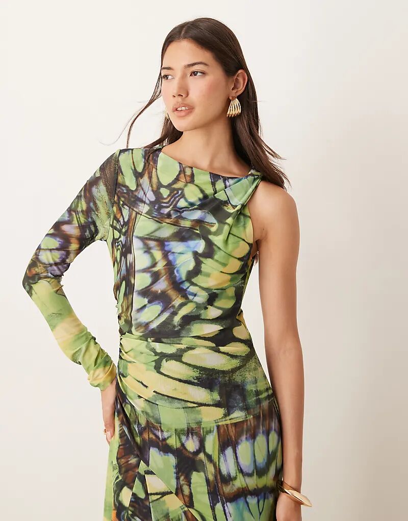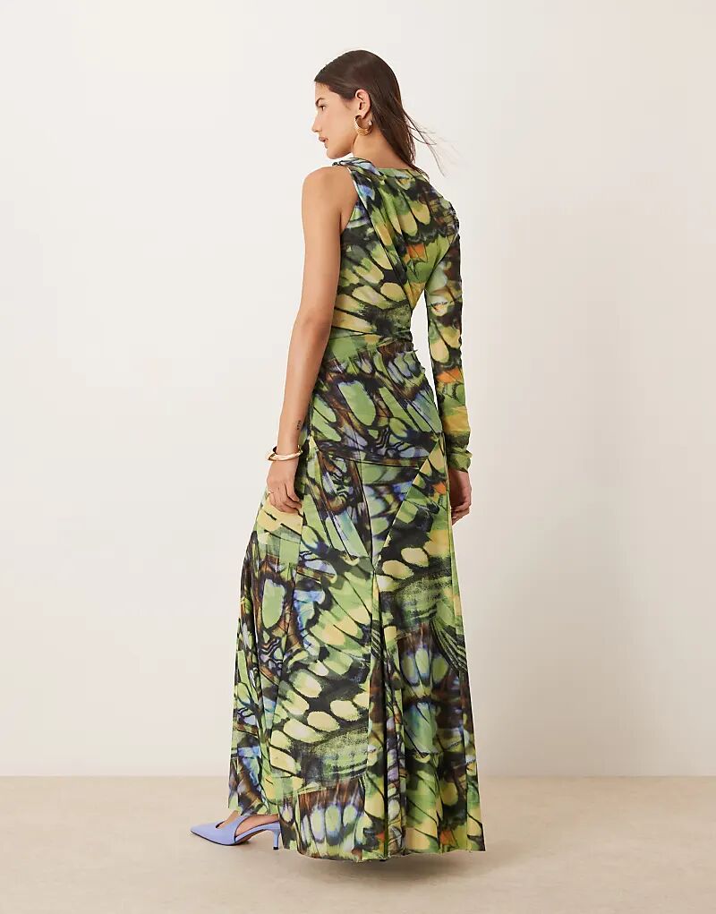 Платье макси с одним рукавом и принтом бабочек Forever New