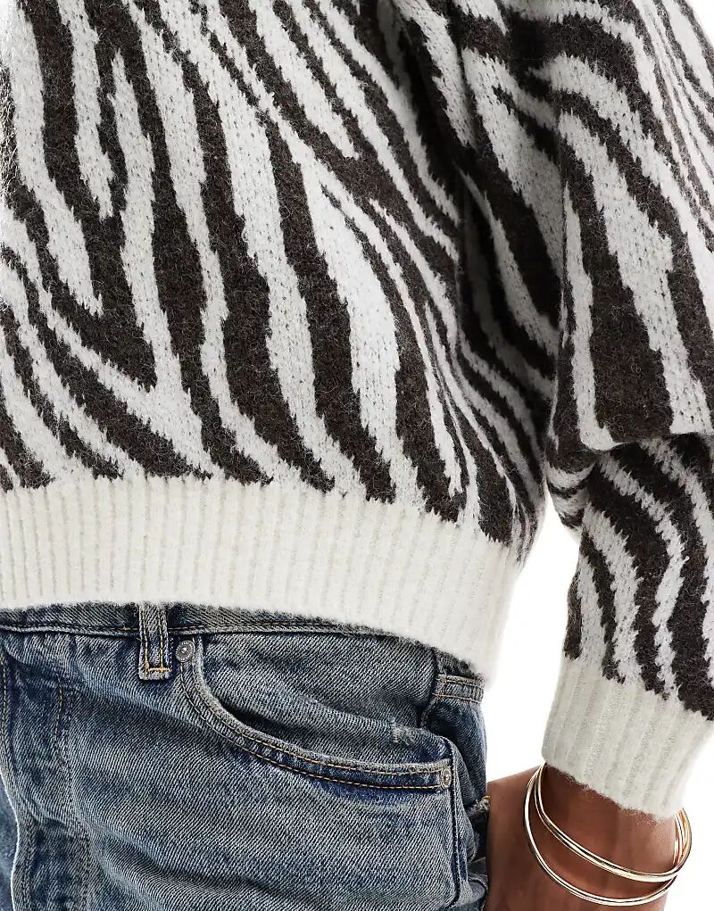 Вязаный джемпер с высоким воротом и принтом зебры Threadbare 4 870₽