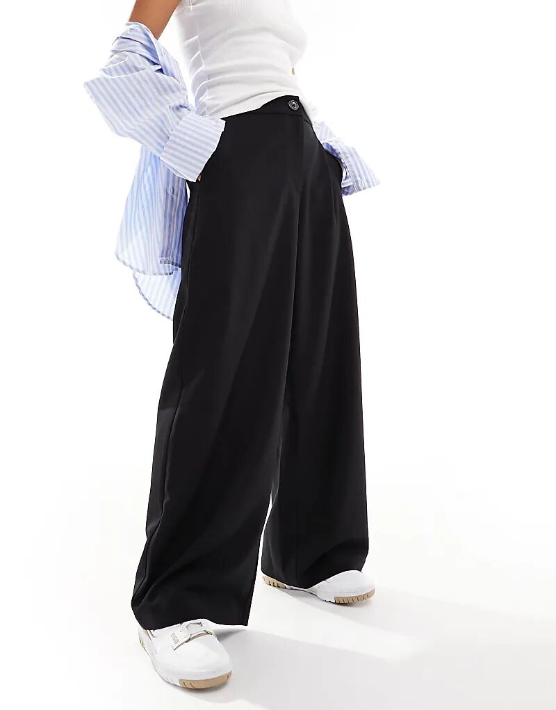 Строгие широкие брюки для папы черного цвета ASOS