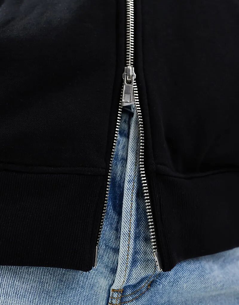 Свободная толстовка Weekday Essence черного цвета с застежкой-молнией.